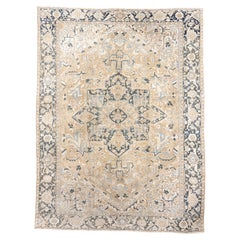 Esta elegante alfombra persa Heriz presenta una interpretación suavizada del clásico diseño de medallón Heriz, en una refinada paleta de beige cálido, marfil, azul pizarra apagado y ...