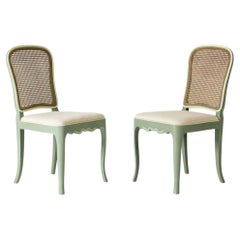 Pareja de preciosas sillas de comedor o auxiliares de Axel Einar Hjorth, modelo llamado "Ängby". Líneas modernas suecas con un toque rococó. De madera, respaldo de ratán, lacado en v...