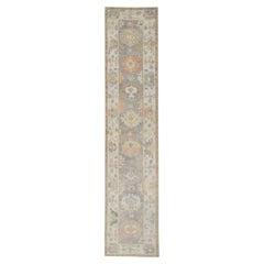 Tan & Purple Handwoven Wool Turkish Oushak Runner 4'2" x 12'1" (Lana turca tejida a mano)