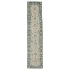 Alfombra turca Oushak Marfil y azul Alfombra de lana tejida a mano 2'11" x 13'4"