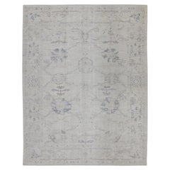 Alfombra turca Oushak Gris claro y azul suave Alfombra de lana tejida a mano 8'3" x 10'9