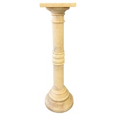 Esta elegante columna de alabastro tallado presenta una forma arquitectónica clásica en piedra suavemente veteada y de tonos cálidos. El esbelto fuste cilíndrico se acentúa con detal...