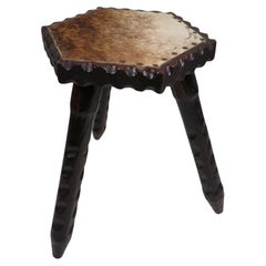 Taburete de Nacimiento de Madera Tallada Española de Mediados de Siglo con Carácter Brutalista
