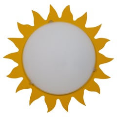 Plafón belga de los años 70 de cristal y madera lacada en amarillo