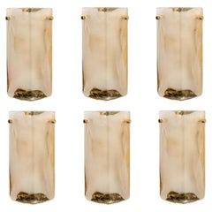 Pareja de apliques italianos de los años 50 en latón y cristal opalino L484