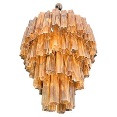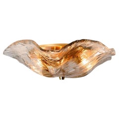 Impresionante araña italiana de cristal soplado a mano con flores, cristal dorado, años 50-60 Una hermosa araña italiana de cristal soplado a mano para montaje empotrado, con una im...