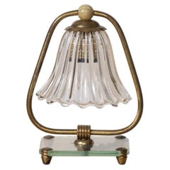 Lámparas italianas de los años 50 de latón curvado y cristal opalino