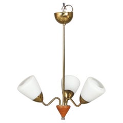 Lámpara colgante francesa de mediados de siglo, de cristal opalino y latón