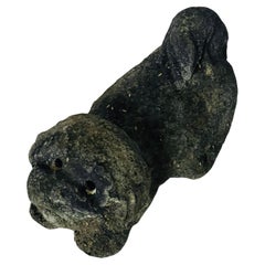 Estatua de jardín vintage de piedra dura de tamaño natural de un perro...