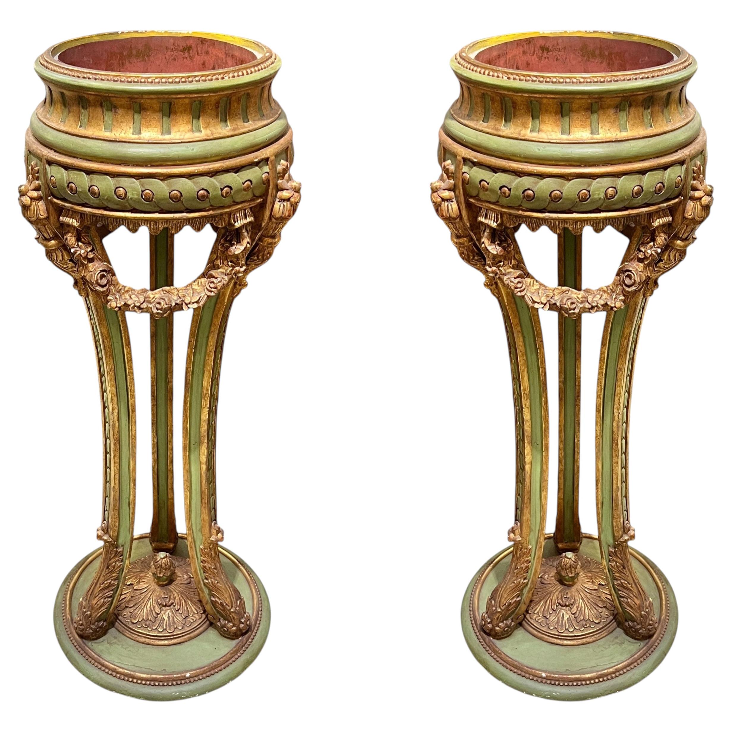 Escaso par de jardineras inglesas talladas y pintadas del periodo georgiano del siglo XVIII