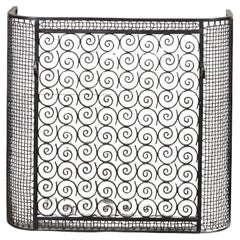 Pantalla de chimenea estacionaria de latón fundido y hierro de alta calidad, antichispas, fabricada en Francia hacia el siglo XX. El biombo presenta un frente decorativo de latón fun...