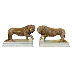 Pareja de Grandes Esculturas Decorativas Perros Foo Azul Turquesa, Estatua de Cerámica