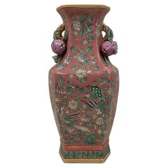 Pareja De Grandes Jarrones Chinos De Esmalte Cloisonné Animales Ciervos Flores Rosa