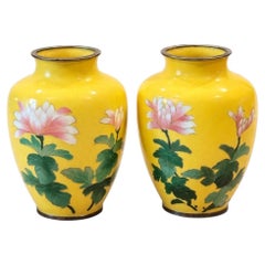 Impresionante y monumental pareja de jarrones chinos de esmalte cloisonné producidos por la Compañía Cloisonné de Pekín, cada uno de aproximadamente 41 pulgadas de altura. Estos ja...