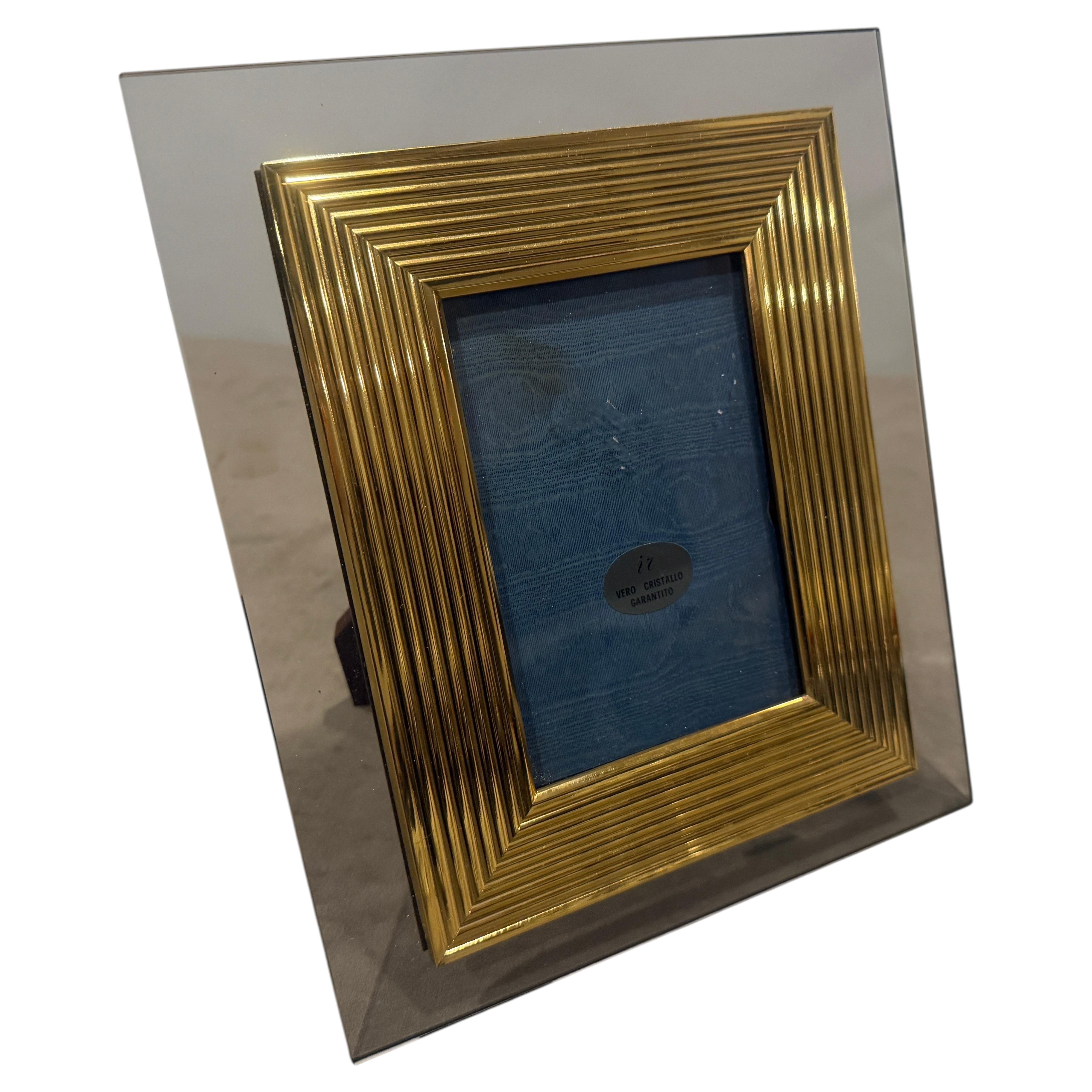 Marco italiano de lujo de latón y cristal ahumado de mediados del siglo XX