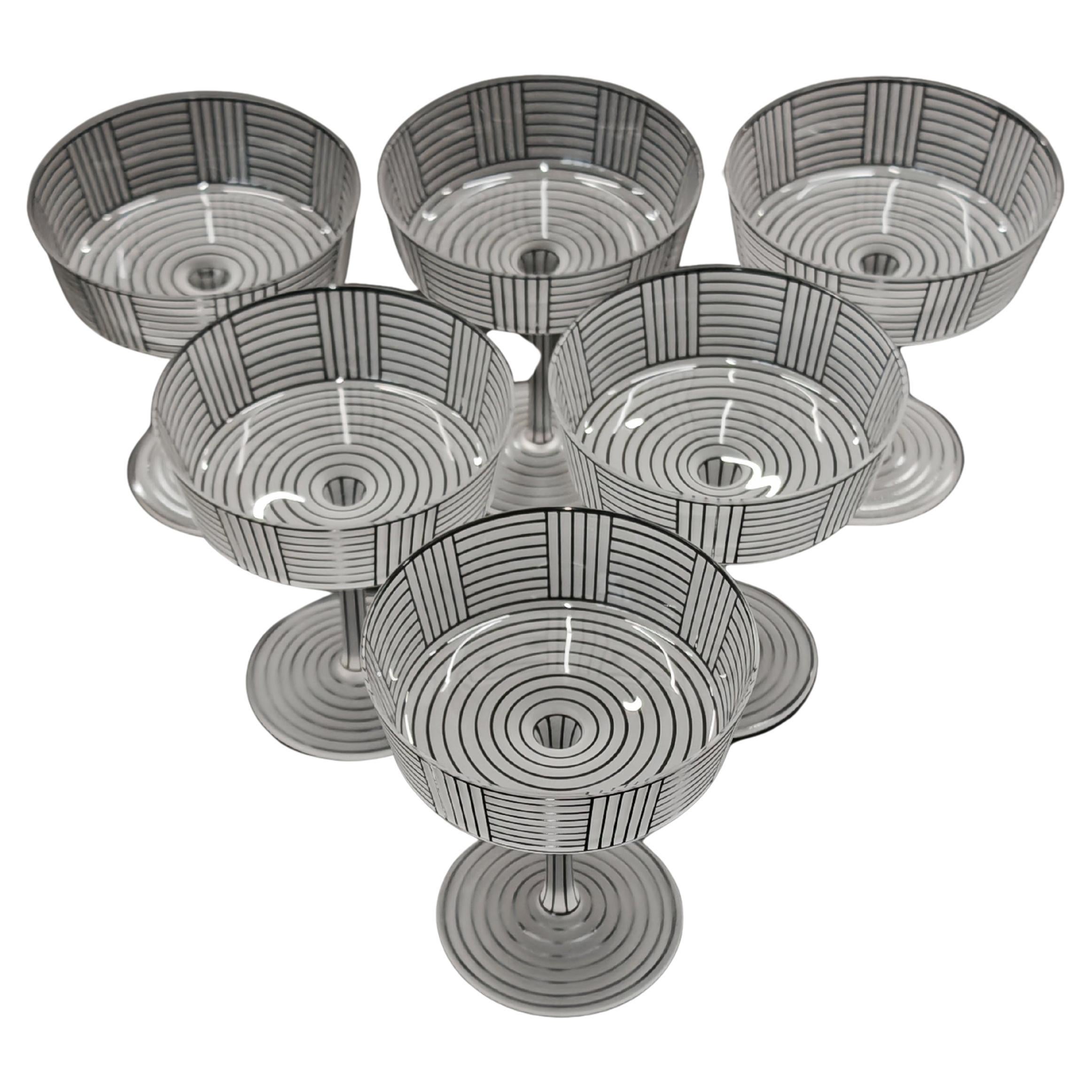 Juego de 6 Copas de Champán de cristal sin plomo "Serie B" diseñadas por Josef Hoffmann para Wiener Werkstätte en 1912.