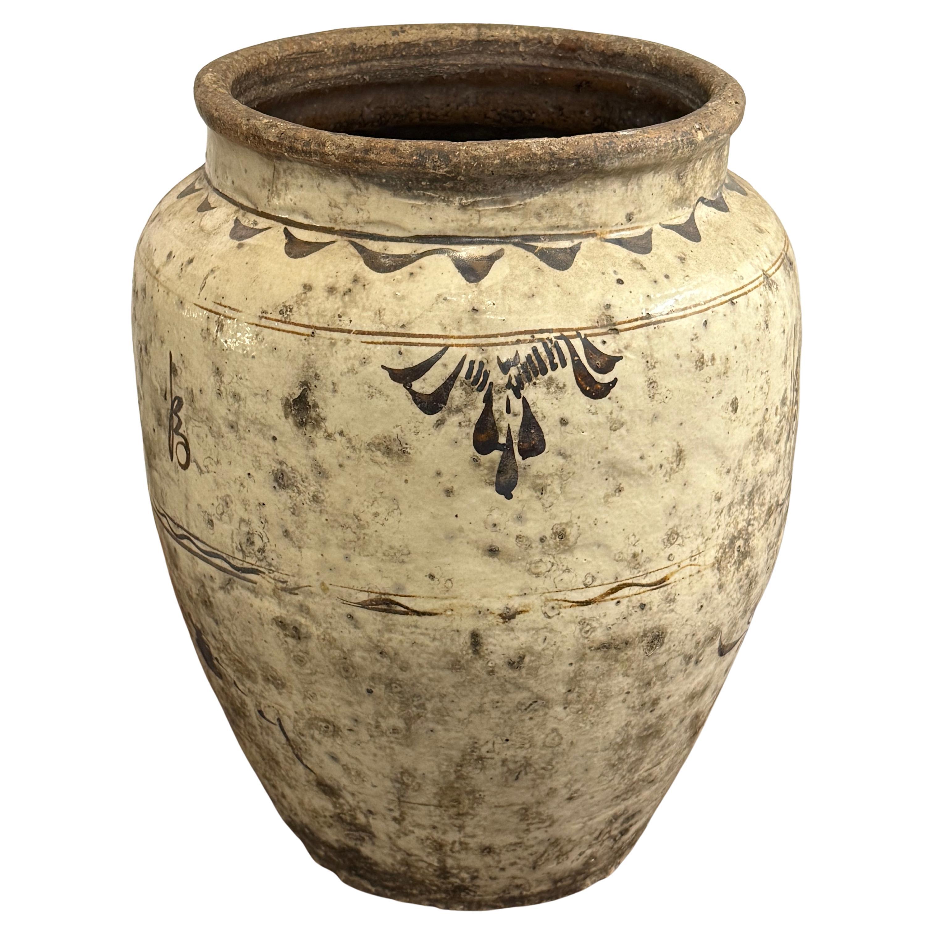 Se trata de una interesante jarra provincial china de gres celadón muy antigua, probablemente de Longquan, con decoración estriada o acanalada, que datamos en la dinastía Ming, entr...