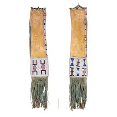Fino par de mocasines de bota de mujer llanos América del Norte Siglo XIX-principios del XX Un par de mocasines altos de mujer nativa americana de las Llanuras, bellamente elabora...