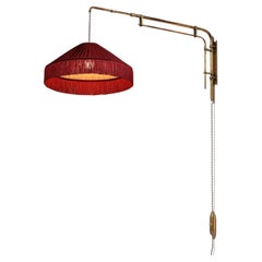 Aplique regulable de latón y tela diseñado y fabricado en Dinamarca, c. 1950.