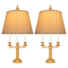 Pareja de Lámparas Candelabro Imperio Francés Siglo XIX de Bronce Patinado Ormolu.