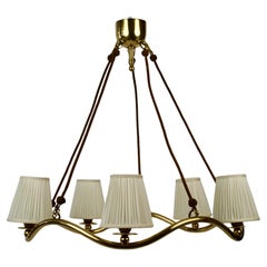 Elegante Lámpara Colgante Moderna Sueca de Seda y Latón, Década de 1940