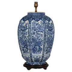 Pareja de lámparas de sobremesa con jarrón holandés de Delft azul y blanco de gran escala, hacia 1850