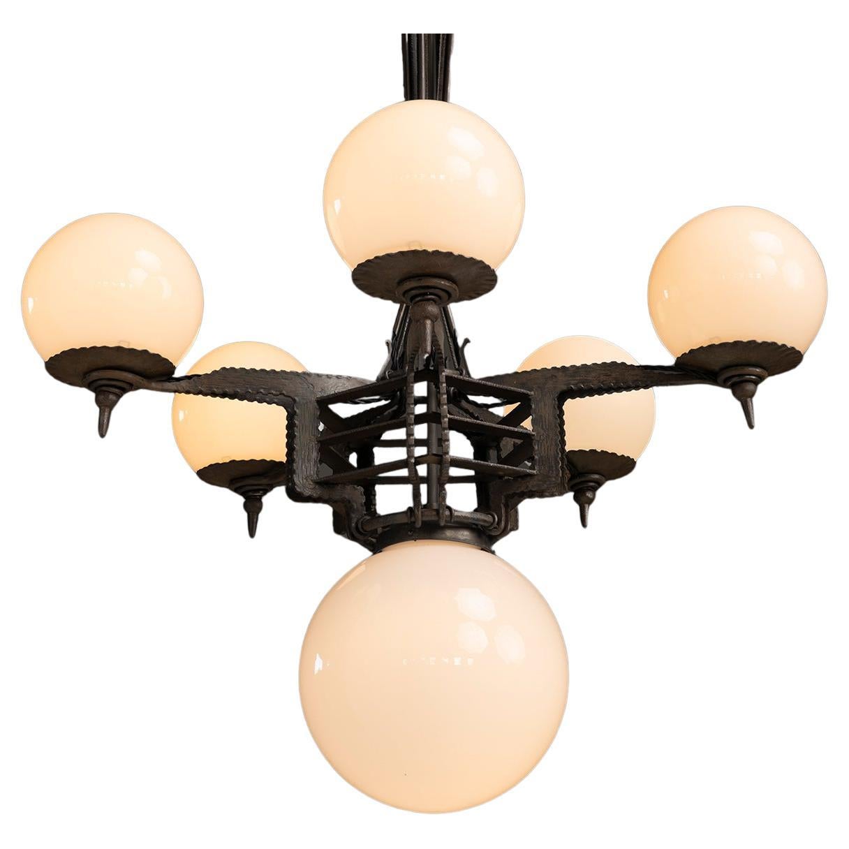 Echa un vistazo a esta fantástica y rarísima lámpara de araña Art Nouveau de principios del siglo XX, alrededor de 1905. Esta lámpara es algo especial, Art Nouveau escandinavo tempra...