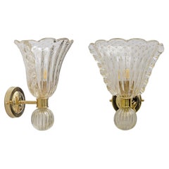 Atribuido a Barovier & Toso Apliques de latón y cristal de Murano Pulegoso, Pareja