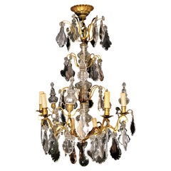 Araña francesa de cristal plateado de finales del siglo XIX de estilo Luis XV