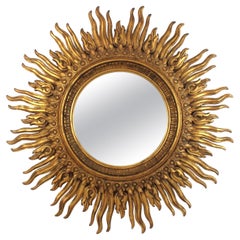 Llamativo espejo octogonal de estilo Hollywood Regency veneciano con marco de cristal dorado iridiscente. España, años 60 Este glamuroso espejo de pared tiene un marco de espejo de d...