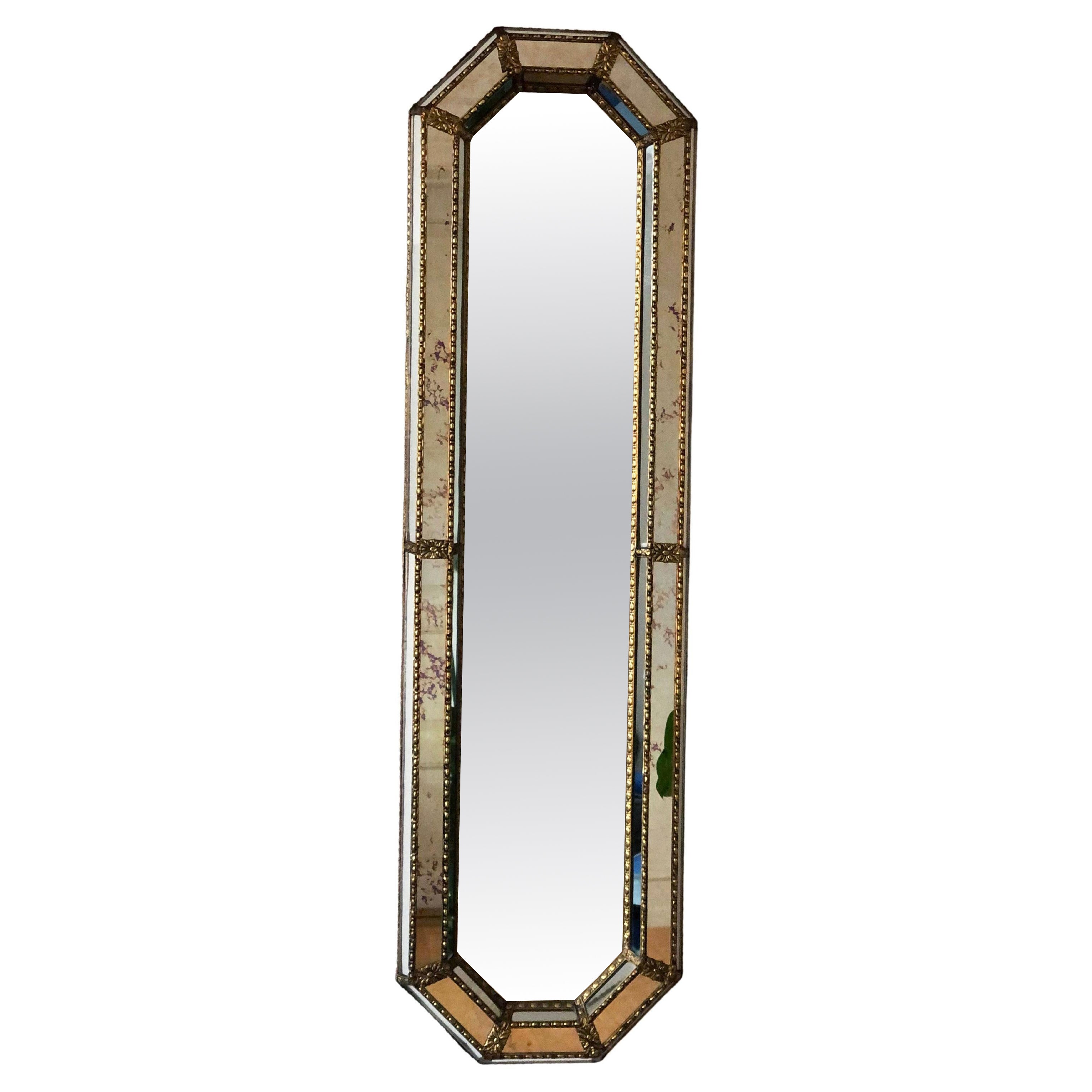 Gran espejo de pared octogonal dorado, Bélgica, años 90