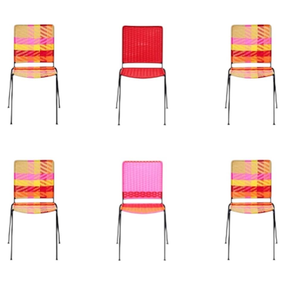 Outdoor IndoorSilla apilable tejida a cuadros rojos, naranjas y amarillos en Studio ALM