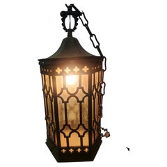 Lámpara de techo muy rara de finales de los años 20 - fabricada en Francia. 4 vasos de color ámbar sólido. Soporte de aluminio cromado. Los apliques correspondientes forman parte de ...