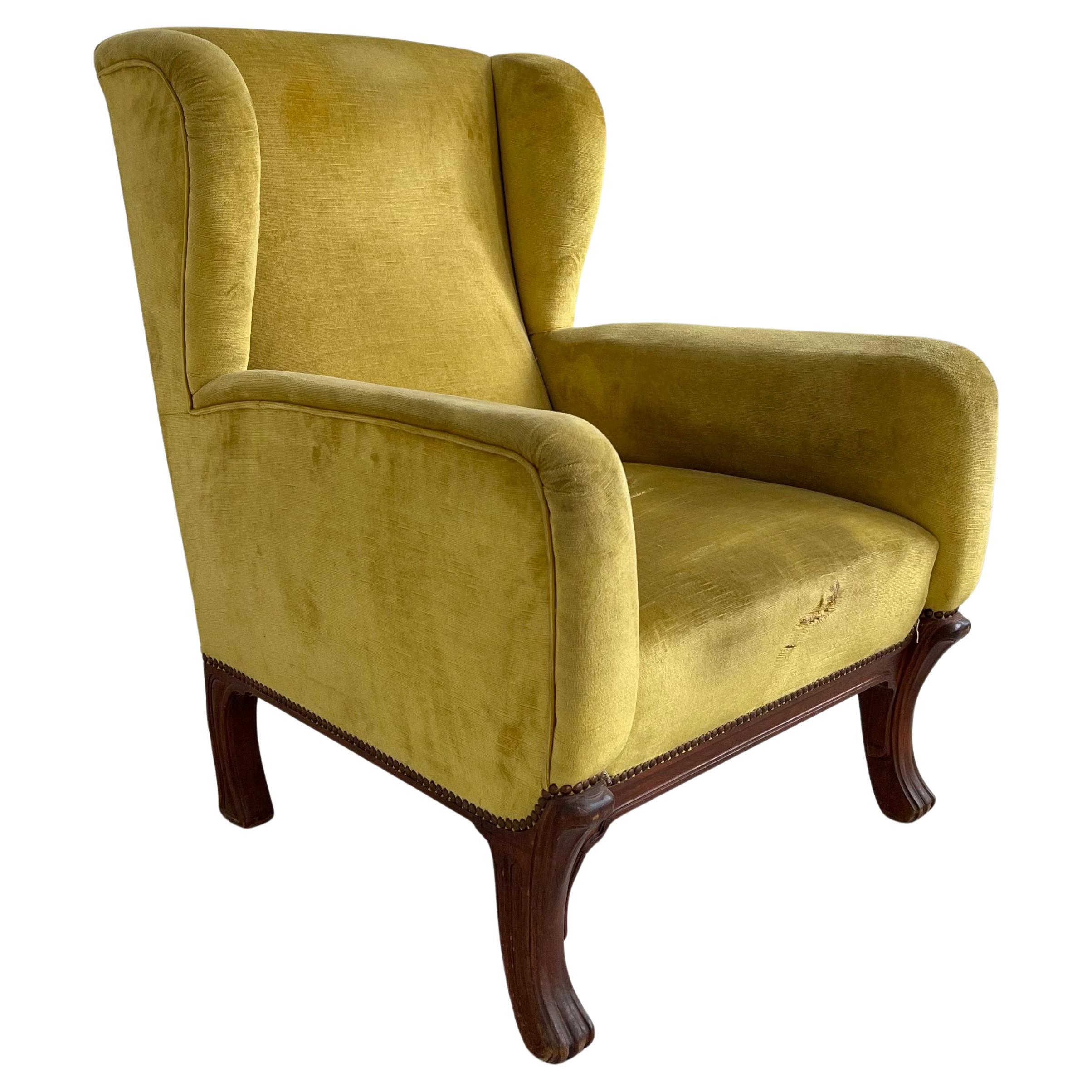 Silla italiana Art Nouveau Liberty única en terciopelo original, colección Malacrida