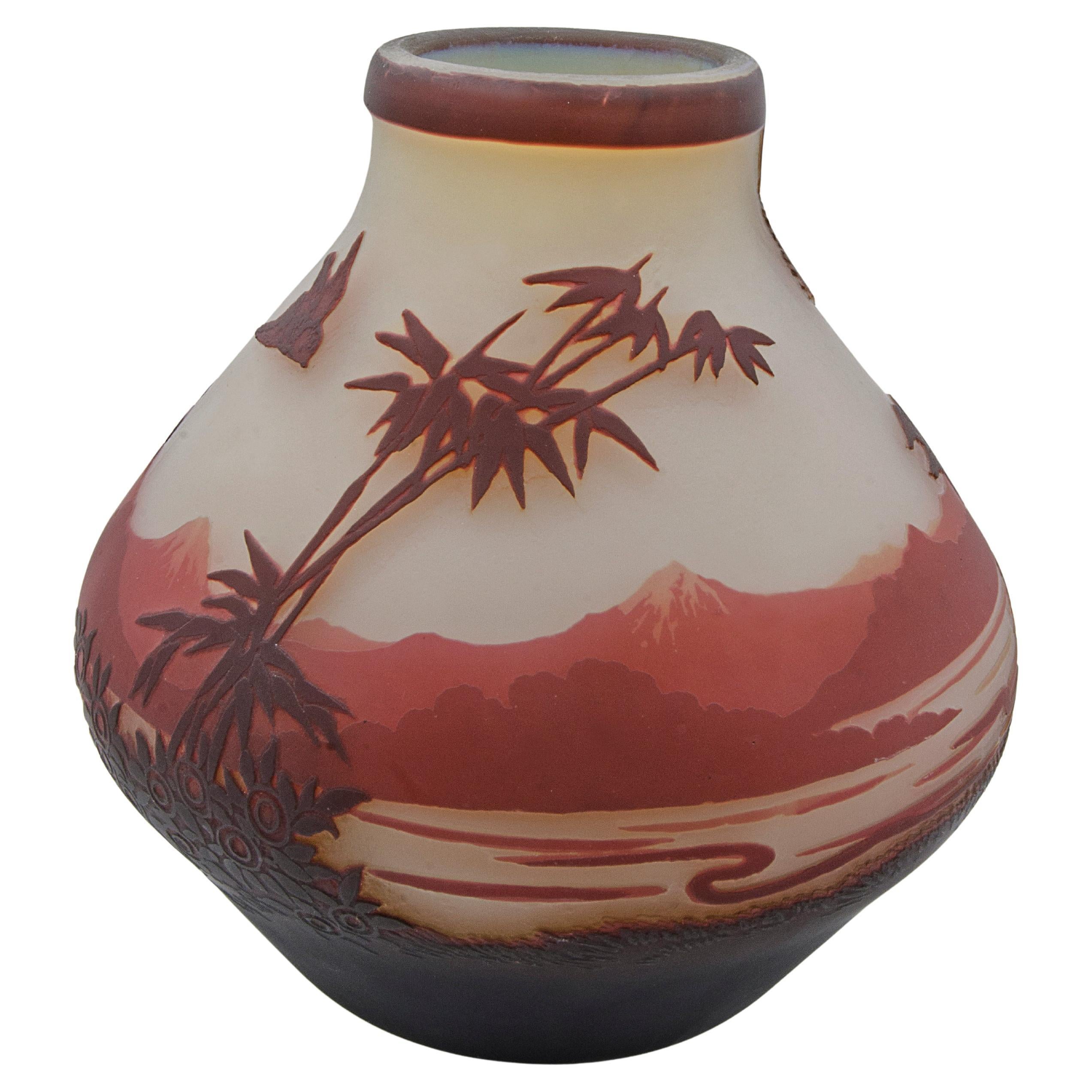 Fino jarrón antiguo de vidrio camafeo Art Nouveau, de Émile Gallé (1846-1904), hacia 1900.