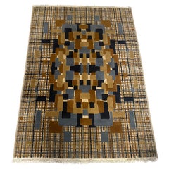 Una alfombra Rya de tonos cálidos de la diseñadora sueca Marianne Richter con su dibujo "Lofstad". Esta alfombra formaba parte de la serie Östergyllan producida por Wahlbecks en Link...