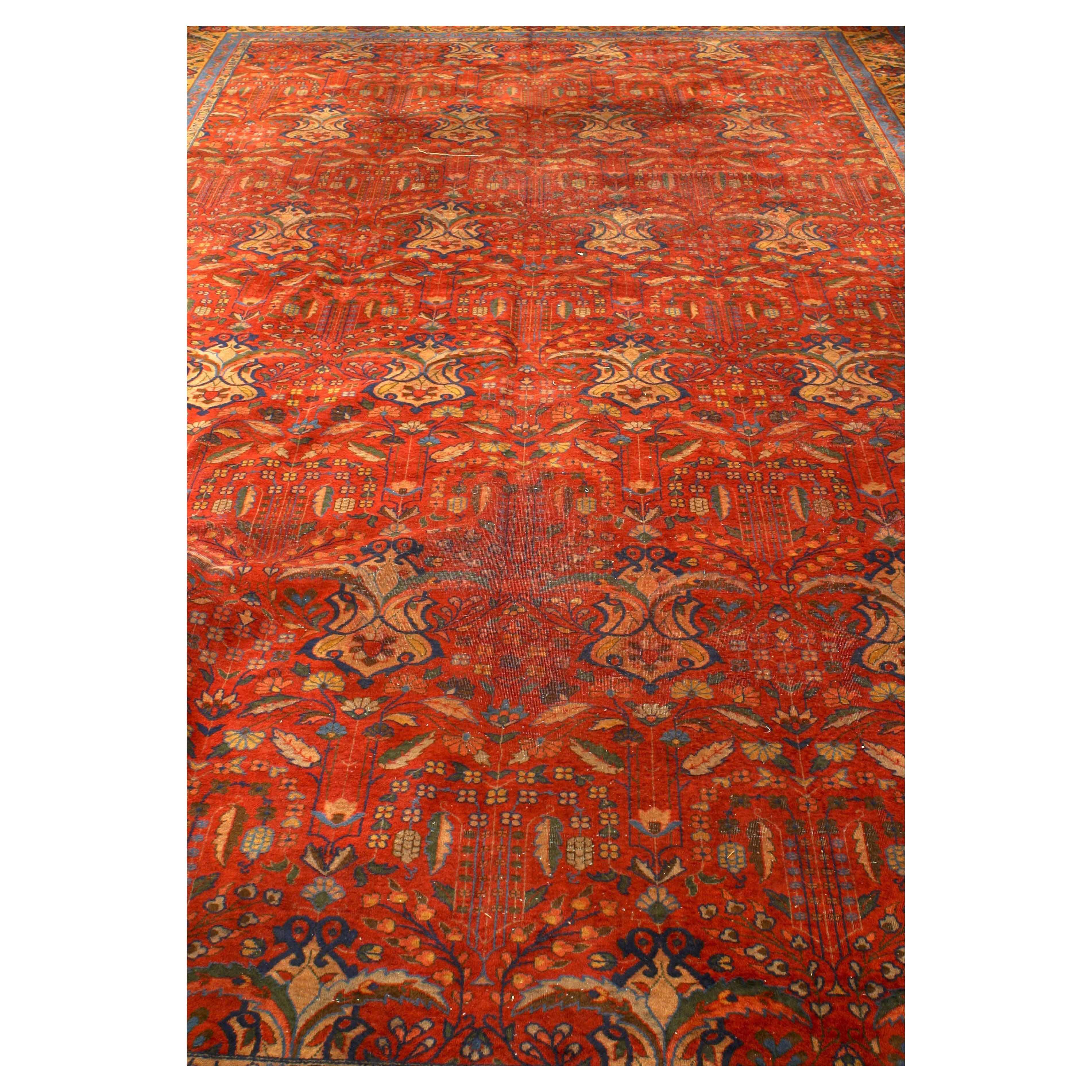 Agra india asiática (siglo XIX) alfombra grande de colores rojo, azul y dorado con diseños florales e inscripciones árabes (aprox. 17½\' x 10\')