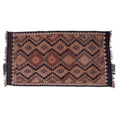 2'3 "x6'4" Alfombra de Pista Tejida a Mano de Pura Lana Kilim Reversible Tonos Naturales
