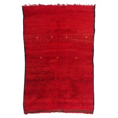Alfombra de lana tribal marroquí roja de mediados del siglo XX