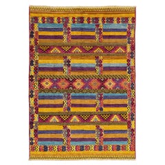 Esta llamativa alfombra moderna de estilo turcomano reimagina siglos de arte nómada para el gran interior contemporáneo. Anudada a mano con lana resistente de alta calidad, esta piez...