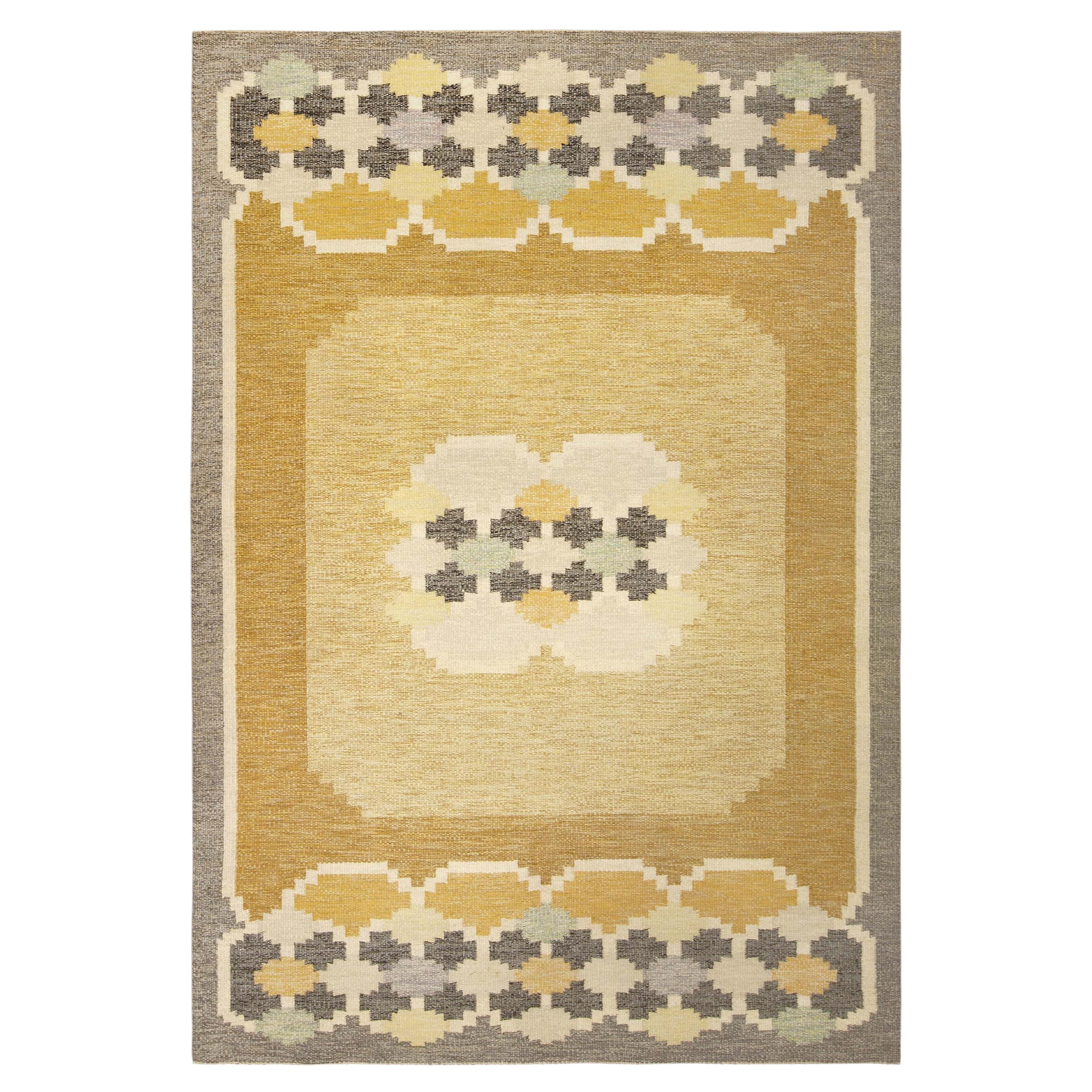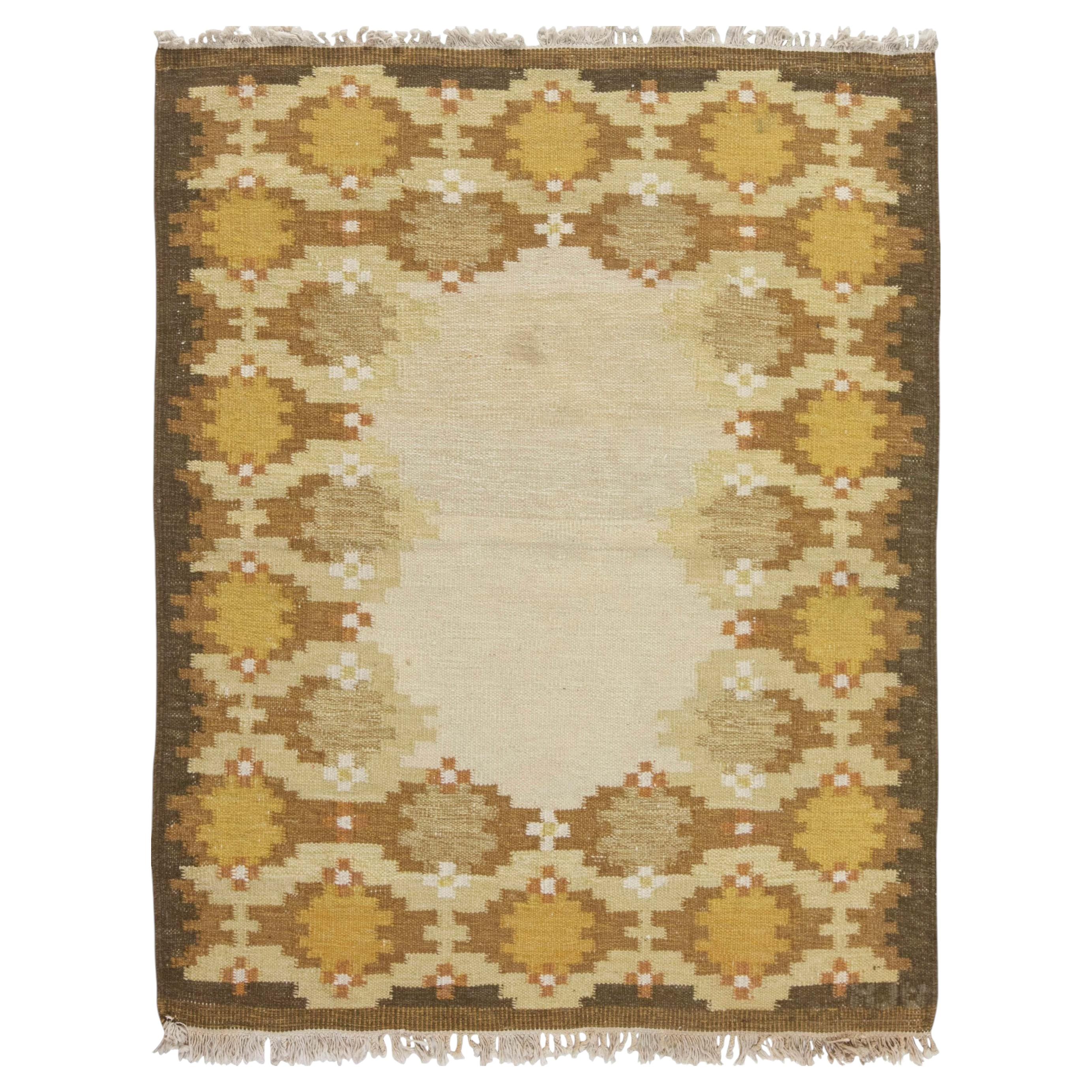 79394 Alfombra Rollakan Sueca Vintage de Ingegerd Silow, 04'06 x 06'10. Este raro rollakan de lana tejida a mano -una creación original del célebre diseñador sueco Ingegerd Silow- es...