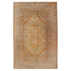 Alfombra persa de Tabriz de principios del siglo XX, de color naranja y azul con detalles en marfil y marrón. Detalles alfombra no. j2906 talla 10' 4" x 14' 6" (315 x 442 cm)