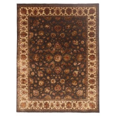 Vinatge Alfombra india de lana con diseño Agra hecha a mano en color marrón claro
