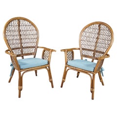 Te presentamos un excepcional conjunto de sillas de ratán de mediados de siglo que encarna a la perfección la relajada elegancia del estilo de la Riviera francesa. Estas sillas desta...