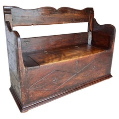 1900 Pequeña Arqueta o Cofre Rústico Gótico de Roble Tallado y Hierro Forjado, Francés
