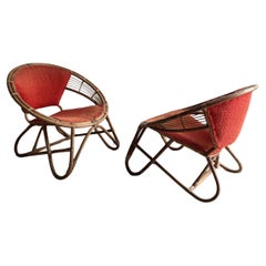 Pareja vintage Isamu Kenmochi Sillas de salón redondas de mimbre y ratán Japón