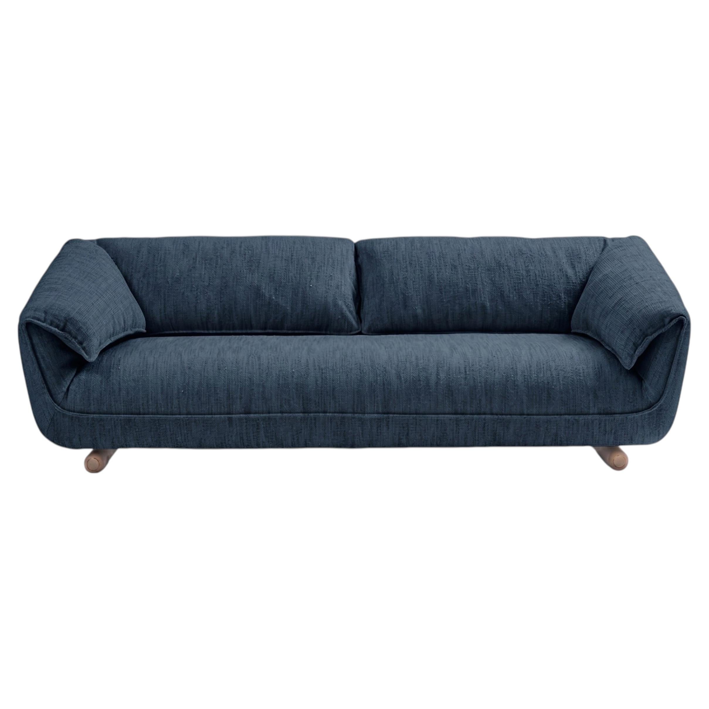 Un sofá contemporáneo de tres plazas definido por un perfil bajo y una silueta continua y redondeada. El diseño presenta un respaldo suavemente curvado que fluye a la perfección haci...