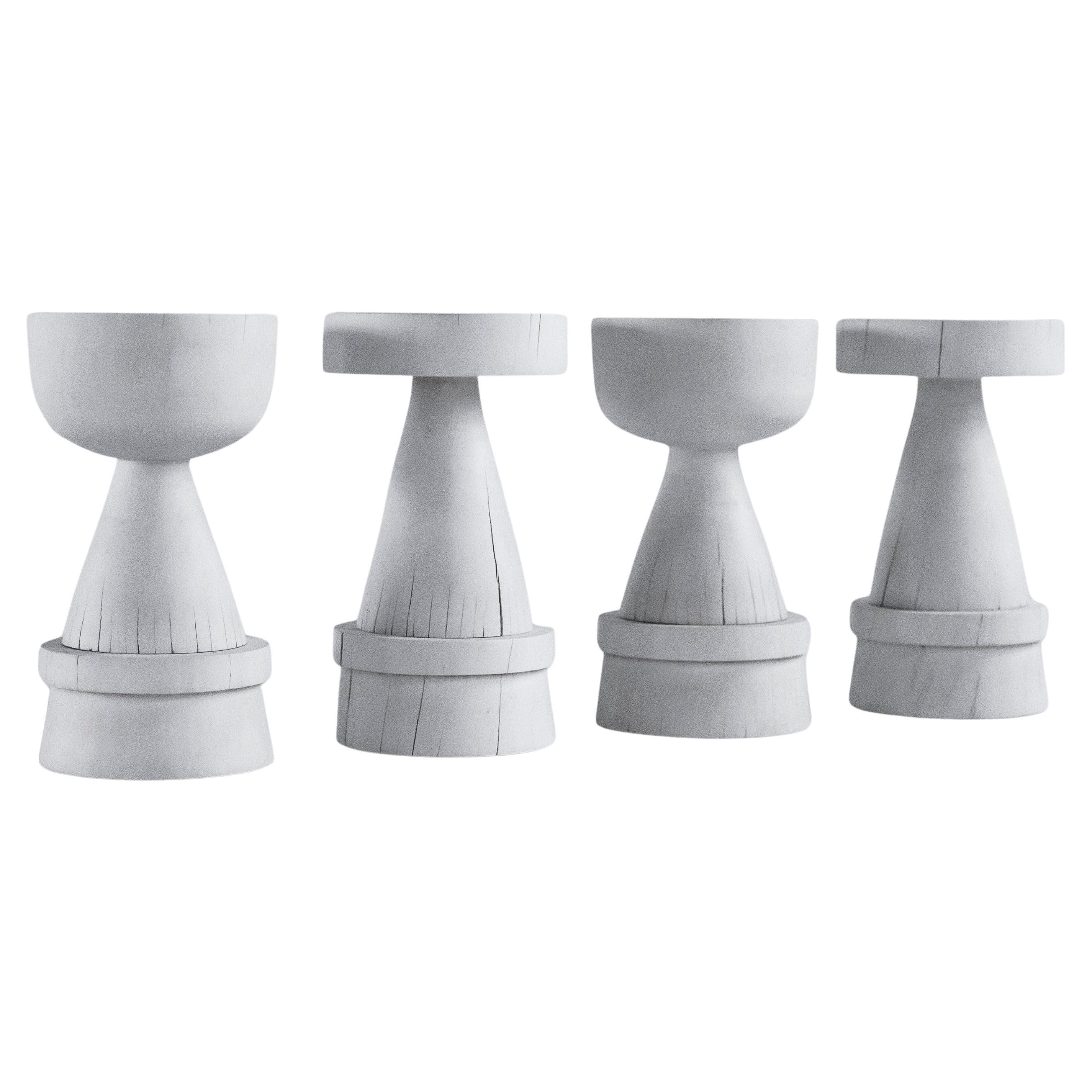 Taburete Cult, Mesa Auxiliar Escultórica, Ónix Blanco Mexicano / Mármol