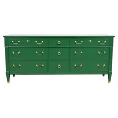 Este aparador o enfilade francés de mediados del siglo XX, estilo Luis XVI y pintado de negro, está construido en caoba maciza y presenta una encimera biselada de mármol blanco con v...