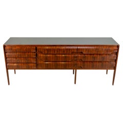 Este aparador grande y elegante está fabricado con cinco tipos diferentes de chapa de ébano de Makassar. Makassar es una madera dura exótica apreciada por su dureza, durabilidad y he...
